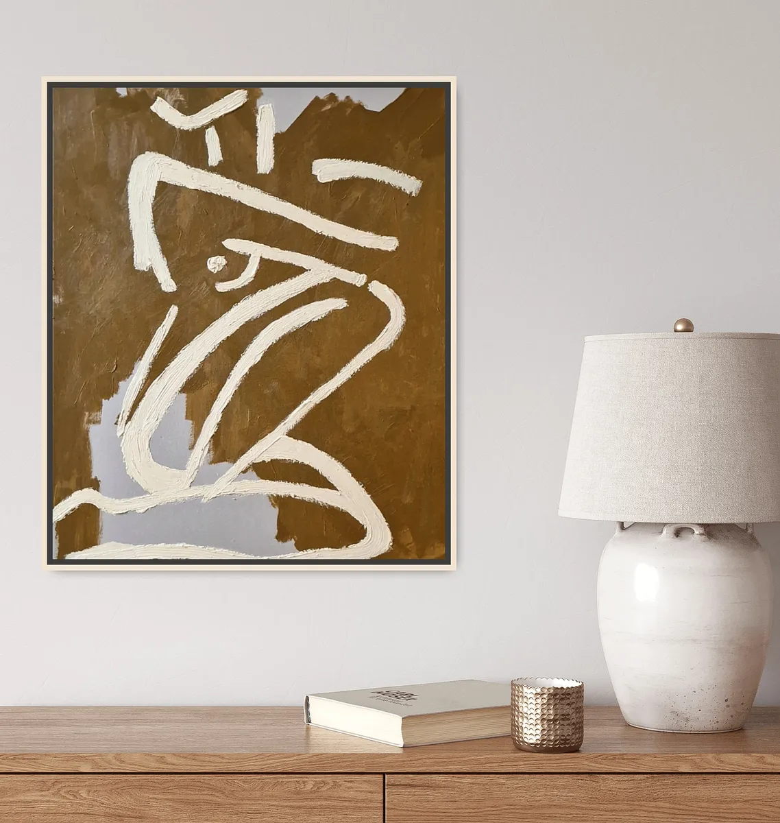 This picture shows a close-up of the artwork, allowing for a clearer view of the textured body lines, which give the painting a unique sense of depth.