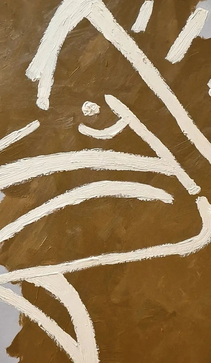 This picture shows a close-up of the artwork, allowing for a clearer view of the textured body lines, which give the painting a unique sense of depth.